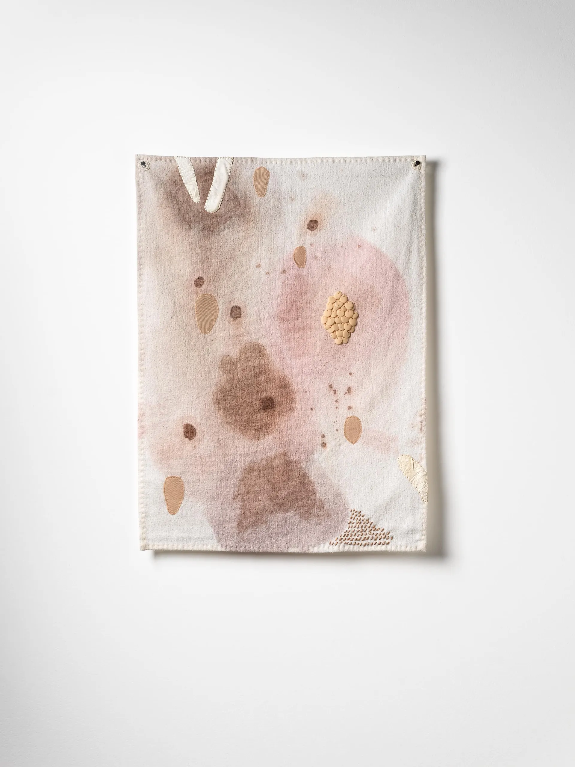 Cotton, leather glove, repurposed threads, handmade sequins, negligee, hand-stained flannelette