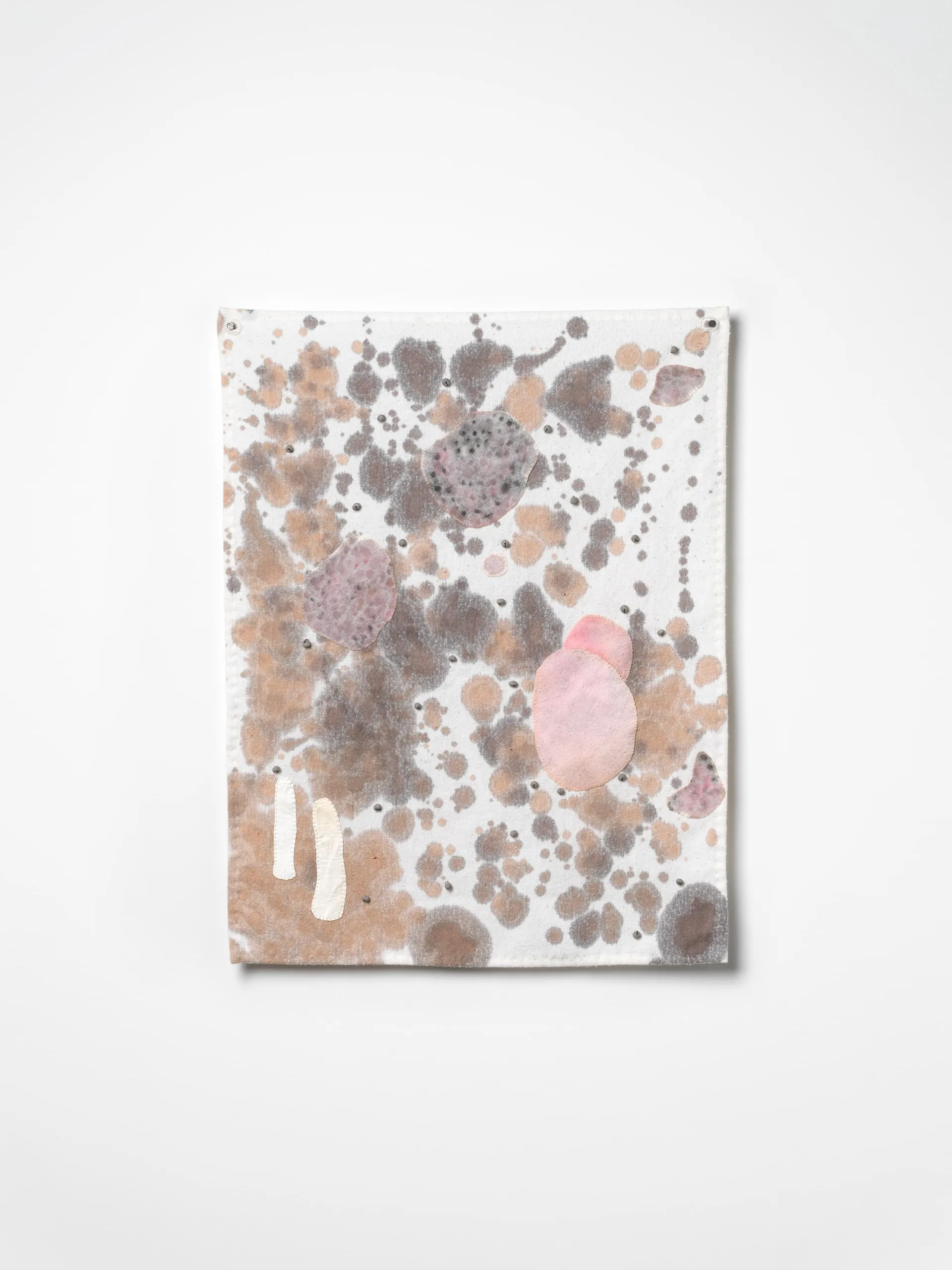 Cotton, leather glove, repurposed threads, handmade beads, hand-stained flannelette