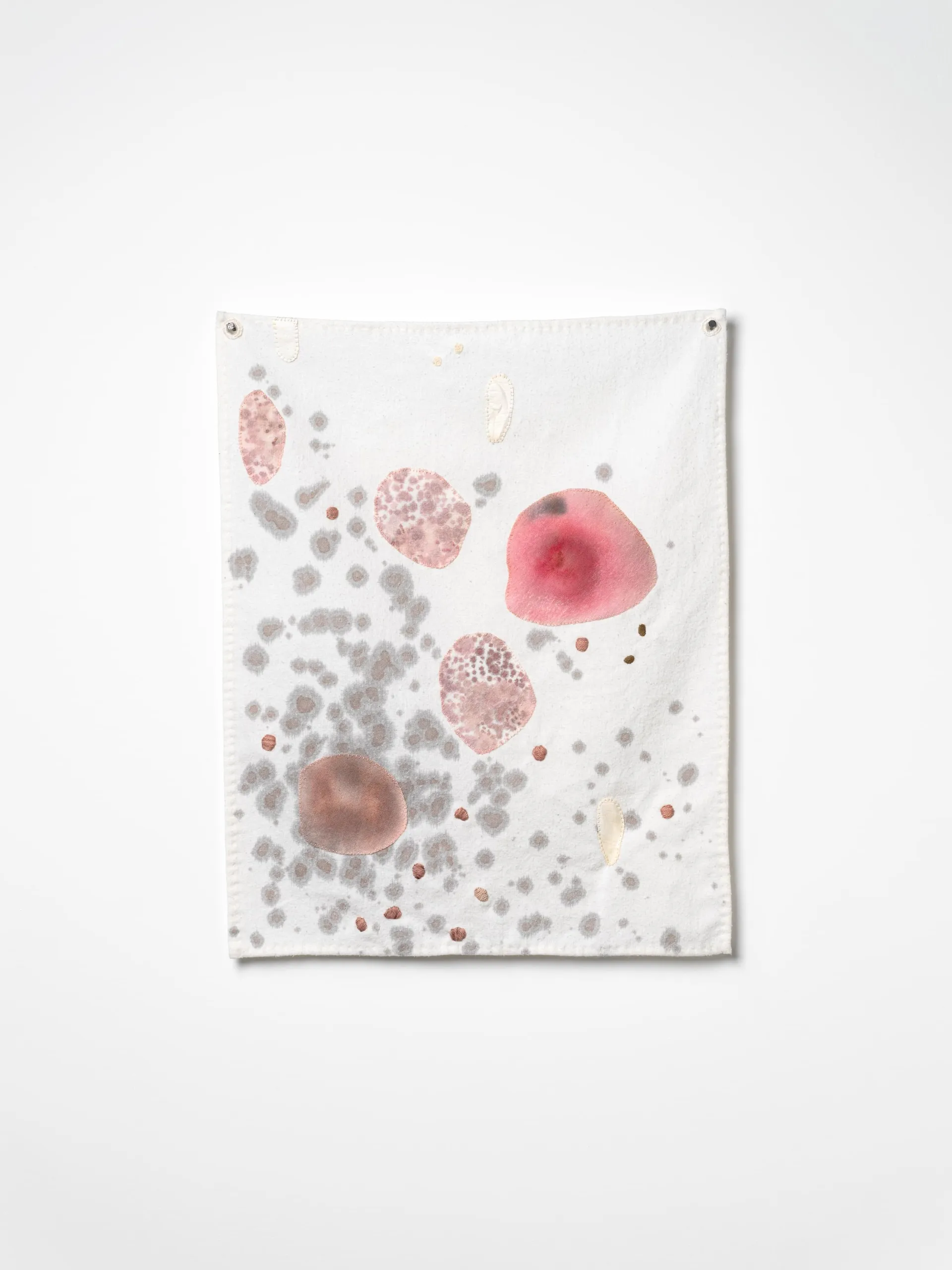 Cotton, leather glove, repurposed threads upon hand-stained flannelette
